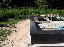 Первые две фотографии отображают состояние места захоронения до проведения работ и монтажа мемориальной композиции.